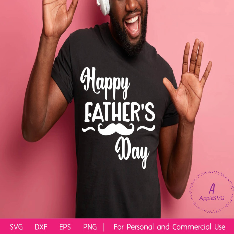 Happy Fathers Day Mustache Design (Formats: SVG, EPS DXF, PNG) for Silhouette and Cricut